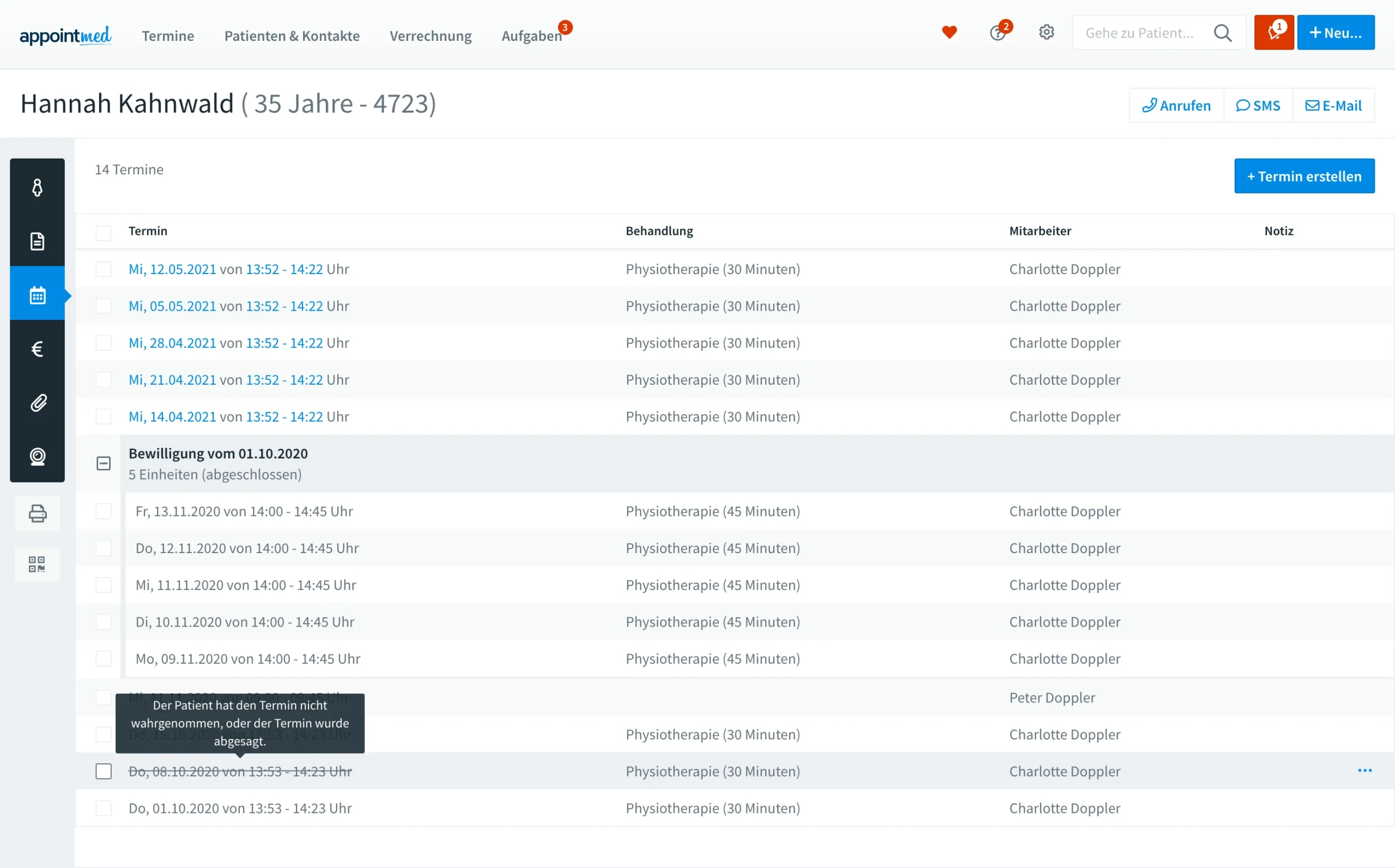 Innerhalb dieser Testphase steht der komplette Funktionsumfang zur Verfügung – inklusive Online-Terminbuchung, Dokumentation und Abrechnung.